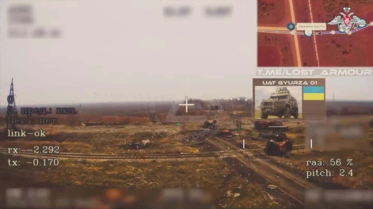 Loạt thiết giáp Ukraine bị phá hủy trên tuyến hậu cần đến Pokrovsk trong video công bố hôm 15/11. Video: BQP Nga