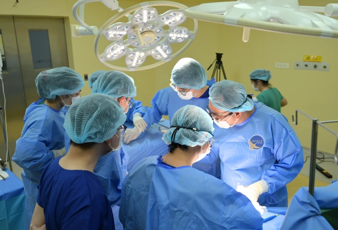 Bác sĩ phẫu thuật ghép thận cho bệnh nhân. Ảnh: Bệnh viện cung cấp