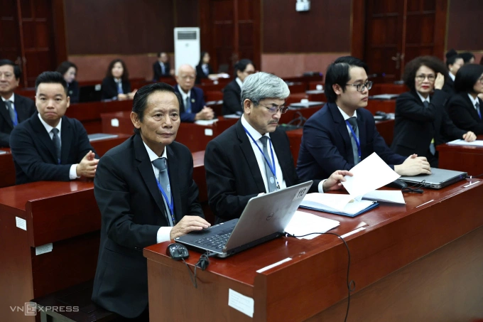 Trang phục luật sư Việt Nam hiện nay được quy định gồm áo sơ mi,vest tối,quần âu,cà vạt có huy hiệu của Liên đoàn. Ảnh: Quỳnh Trần