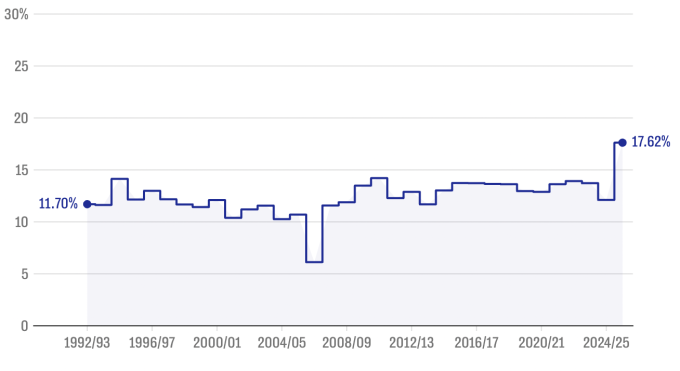 Tỷ lệ bàn thắng từ phạt góc qua các mùa giải Ngoại hạng Anh. Ảnh: Telegraph