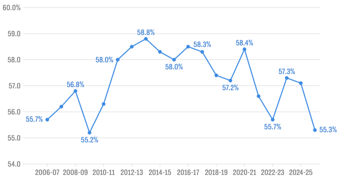 Tỷ lệ bóng thực sự lăn qua các mùa giải Ngoại hạng Anh. Ảnh: Telegraph
