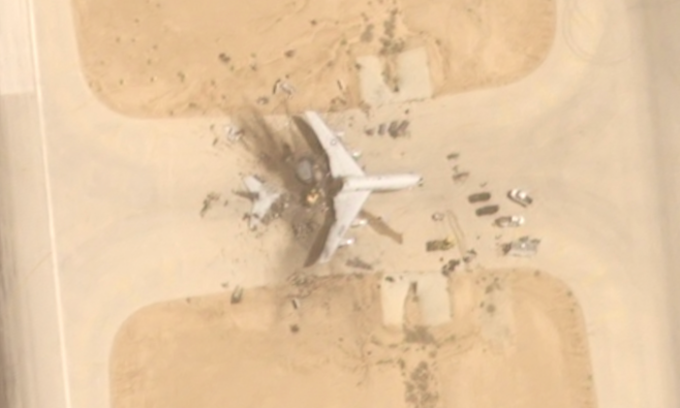Ảnh vệ tinh thương mại do hãng Airbus chụp hồi đầu tuần và được đài CNN phân tích hôm 2/4 cho thấy hàng loạt thiệt hại ở căn cứ Prince Sultan,miền trung Arab Saudi,sau các đòn tập kích bằng tên lửa và máy bay không người lái (UAV) của Iran.