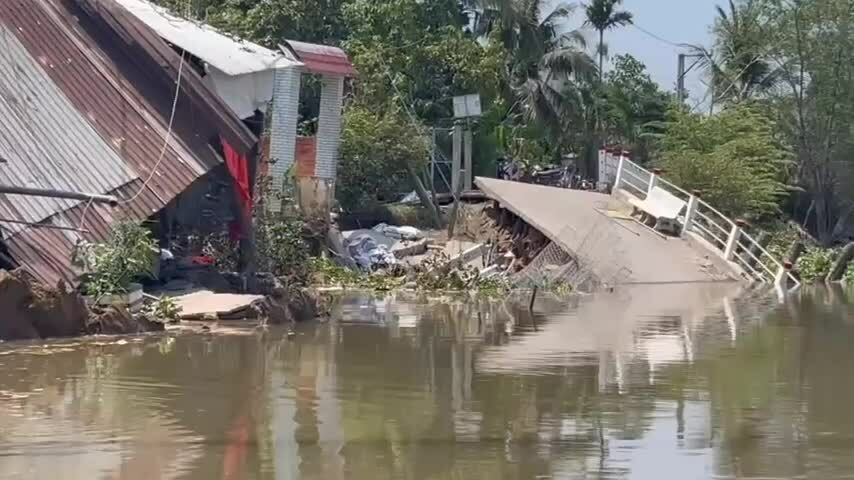 Chưa kể việc mất thân đê bao đe dọa trực tiếp 500 ha sầu riêng chuyên canh của địa phương. Trong mùa khô,nếu triều cường dâng cao,nước mặn có thể theo điểm sạt lở xâm nhập nội đồng,gây thiệt hại lớn.