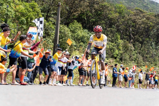 Moise - tay đua người Rwanda khoác áo TP HCM Vinama - vẫn chứng tỏ sức mạnh vô đối trên đường đèo. Anh không chỉ làm máy kéo cho Áo Vàng Yarash (TPHCM New Group) mà còn giành chiến thắng ở hai đỉnh đèo để chính thức giành Áo Đỏ.